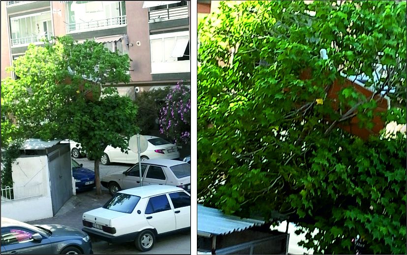 Masanın balkondan düştüğünü fark eden çevre sakinleri ev sahibine haber vererek, ağaçta asılı kalan masa araç yardımıyla indirildi. (haber/foto: İbrahim Şahin)