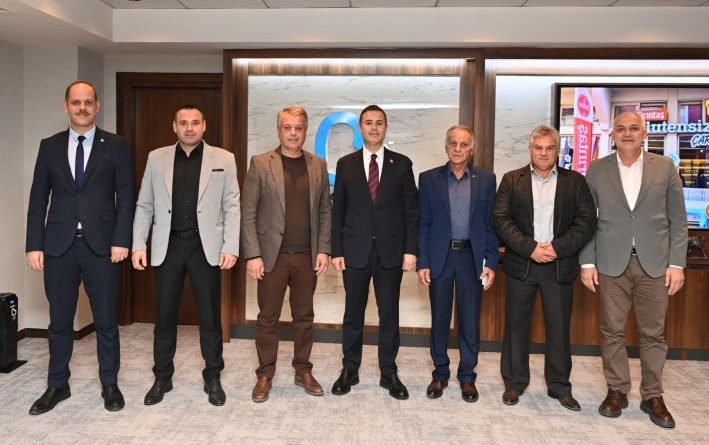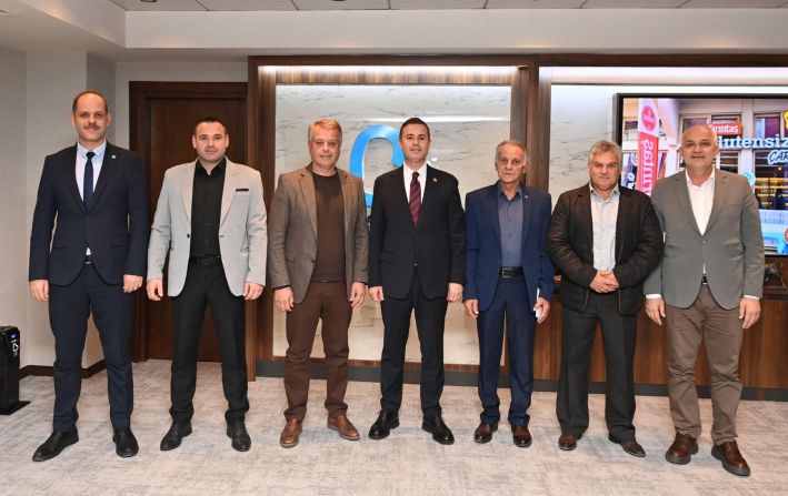 Büyükşehir Belediye Başkanı Ahmet Akın’ı makamında ziyaret eden Erdek Esnaf Odası Başkanı Vahit Kocabıyık, Erdek Sanayi Sitesi Kooperatif Başkanı Osman Bulut, Sanayi Sitesi Müdürü Hasan Aygül ve Erdek Ziraat Odası Başkanı Mustafa Saçıl, Erdek Küçük Sanayi Sitesi yollarının, çevresinin ve genel yerleşim düzeni konusunda en kısa zamanda taleplerin yerine getirileceği sözünü aldı. Başkan Akın’a ayrıca ziyaret sırasında Erdek bölgesindeki zeytincilerinin de sıkıntı ve beklentileri iletildi. (haber/foto: Metin Issızlar)