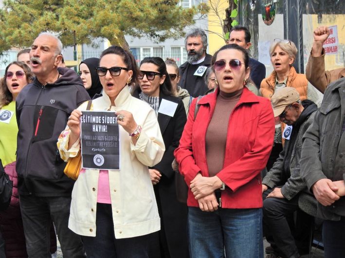 Eğitim politikalarının bilimsel ve kamusal temellerden uzaklaştırılması, okulların ve eğitim bileşenlerinin toplumsal itibar kaybı bu tabloyu daha da ağırlaştırmaktadır. Yaşanan bu vahim olay, eğitim alanının bilimsel ve pedagojik temellerden uzaklaştırılması durumunda nasıl derin yaralar açılabileceğini bir kez daha göstermiştir. Eğitim kurumlarını ve toplumu şiddetten arındırmak için eşitlikçi, kapsayıcı ve kamusal bir eğitim anlayışının yeniden inşası zorunludur. Gençleri yalnızlaştıran ve okulları eğitim alanı olmaktan uzaklaştıran politikalar sürdükçe benzer acıların yaşanma riski ortadan kalkmayacaktır. Yetkilileri açıkça uyarıyoruz: Eğitim sistemini eşitsizlikleri derinleştiren ve kamusal niteliğini aşındıran siyasi iktidar; tüm kurumları işlevsizleştiren, denetim ve destek mekanizmalarını zayıflatan idari anlayış ve bu süreçte sorumluluğu olan yöneticiler yaşanan tablonun doğrudan sorumlusudur ve kamuoyu önünde hesap vermelidir. Biz bu ülkenin eğitim emekçileri olarak yalnızca eleştirmiyoruz; çözüm üretiyoruz, yol gösteriyoruz, sorumluluk alıyoruz. Aylar değil, yıllardır söylüyoruz: Okullarda güvenlik tesadüfe bırakılamaz! Okullarda güvenlik bir temenni değildir, devletin asli görevidir! Rehberlik ve psikolojik danışmanlık hizmetleri vitrin süsü değildir, hayati bir ihtiyaçtır! Öğretmenin ve öğrencinin can güvenliğini sağlayamayan hiçbir yönetim bu sorumluluktan kaçamaz! İşte bu yüzden buradayız! İşte bu yüzden ‘artık yeter’ diyoruz! Altını çizerek taleplerimizi kamuoyuna ve Bakanlığa ilan ediyoruz: Okullarda revir ve sağlık görevlisi bulunmalıdır. Okul girişlerinde kadrolu güvenlik görevlisi görevlendirilmeli, girişlerde denetim sağlanmalıdır. Okullarda yeterli sayıda kadrolu temizlik personeli görevlendirilmelidir. Her öğrenci için ücretsiz, sağlıklı okul yemeği ve temiz içme suyu sağlanmalıdır. Her okula rehber öğretmen atanmalı, öğrenci sayısına göre rehber öğretmen sayıs artırılmalıdır. Rehber öğretmenlerin raporları dikkate alınmalıdır. Ülkemizdeki sosyal hizmetler sistemi geliştirilmeli ve okullarla sosyal hizmetler arasında ilişki kurulmalıdır. CİMER üzerinden öğretmenler üzerinde kurulan baskıya son verilmelidir. Kalabalık sınıflar azaltılmalı, yeni okul binaları ve derslikler yapılmalıdır. Sanat ve spor dersleri güçlendirilmeli, okul takımları ve sanat kulüpleri yaygınlaştırılmalıdır. Bizler buradayız! Susmayacağız! Alışmayacağız! Normalleştirmeyeceğiz! Yaşanan bu vahim saldırıda yaralanan polisimize, yurttaşımıza, eğitim emekçilerine ve öğrencilere acil şifalar diliyoruz. Eğitimde şiddete karşı gerçek, somut ve acil önlemler alınana kadar mücadelemizin süreceğini kamuoyuna bildiririz.” (Haber-foto : Adem Halat)