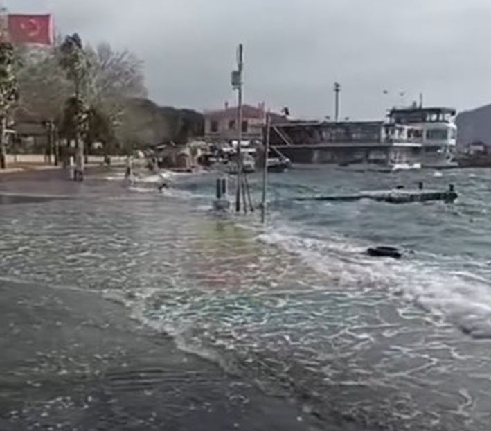 Saatteki hızı zaman zaman 60/70 kilometreye ulaşan lodosta, denizde yüksek dalgalar oluşurken, kıyılarda deniz karayla birleşti.