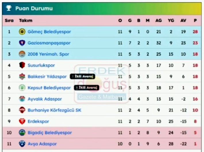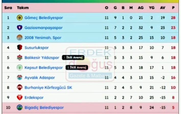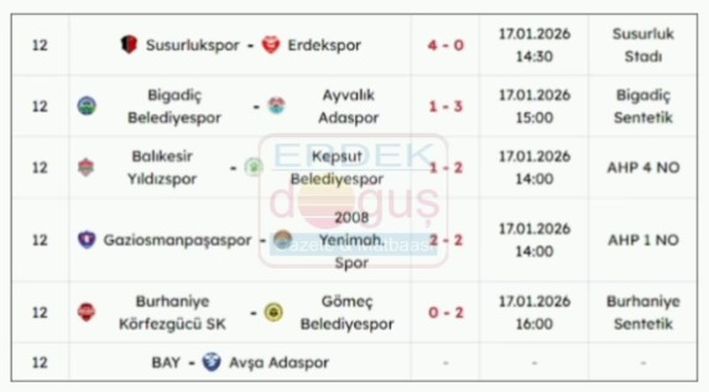 Erdekspor aldığı bu sonuçla 8 puanla puan cetvelinde 9. sırada yer alırken, Susurlukspor ise puanını 18’e çıkararak puan cetvelinde 4. sıraya yükseldi. Erdekspor önümüzdeki hafta ligi maç oynamadan bay geçecek.