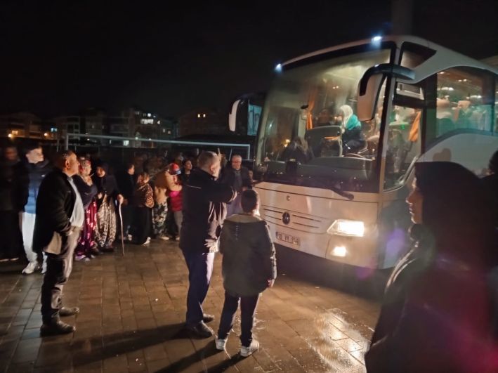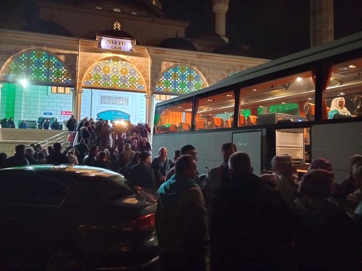 Kafileyi uğurlamak için cami önünde toplanan yakınları ve vatandaşlar, duygusal anlar yaşadı. Programda Kur’an-ı Kerim tilaveti okunarak dualar edildi. Umre yolculuğuna çıkan vatandaşlar, yakınlarıyla vedalaşıp helallik alırken, gözyaşları geceye damga vurdu.