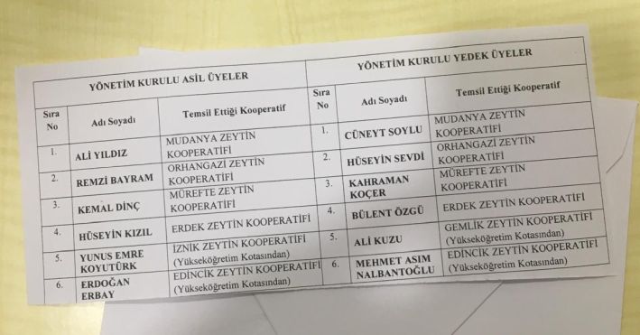 Marmarabirlik’in Bursa/Başköy’deki genel merkezinde bugün düzenlenen kongrede tek liste ile aday olan mevcut başkan Ali Yıldız güven tazelerken, yenilenen Yönetim Kurulunda 4.ncü sırada Erdek Zeytin Kooperatifi’nden Hüseyin Kızıl yer aldı.