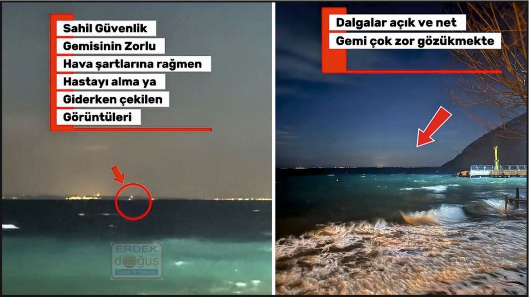 Bunun üzerine 112 Acil merkezi, Erdek Sahil Güvenlik Komutanlığı ile irtibata geçti. İhbarın ardından kısa sürede hazırlıklarını tamamlayan Sahil Güvenlik ekipleri, kötü hava koşullarına rağmen tereddüt etmeden denize açıldı.