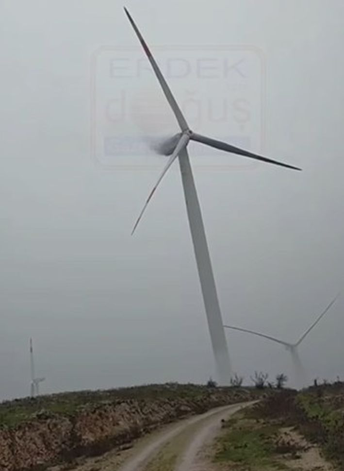 (Erdek Doğuş) – Balıkesir Karesi Yeniköy’de özel bir şirkete ait RES türbinine yıldırım düşmesi sonucu yangın çıktı.